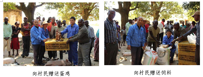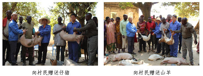 2018年6月21日上午,加丹加高原风和日丽,晴空万里。两辆印有“FAO”标识的车子开进了CANPS UNILU村,中国专家组成员、上加丹加省合作伙伴畜牧专家MBUYU博士和FAO驻卢本巴希办公室官员一行,给村民们送来了6头仔猪、5头山羊、30只蛋鸡、30只小鸭以及一批饲料和兽药,总价值约1200美元。看到这些生产物资,村民们用歌声和舞蹈向专家组一行表示由衷的感谢,由此开启了中-刚南南合作项目援助的新形式。