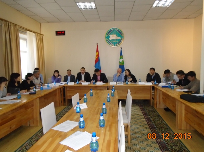2015年12月8日,中蒙“南南合作”二期项目年终总结会议在乌兰巴托召开。蒙项目指导委员会主要成员、FA0驻蒙办公室项目官员、中方专家技术员以及蒙方合作伙伴负责人等共30余人参加了会议。会议由蒙方协调员Binderyaa主持,蒙食品农业部国务秘书兼项目指导委员会主任阿伦宝力道先生、FAO驻蒙办公室副代表凯文先生分别致辞。