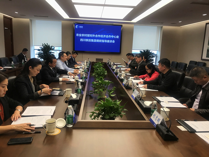 2021年4月6—9日,外经中心张陆彪主任、李志平副主任一行赴四川省成都、眉山等地开展了农业对外合作专题调研。了解四川农业对外开放合作及青白江农业对外开放合作试验区建设情况。四川省农业农村厅陪同调研。图为与四川铁投集团唐勇董事长就四川联邦楚瓦什农业园项目交换意见。