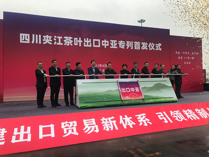 4月9日,张陆彪主任出席“四川夹江茶叶出口中亚专列”首发仪式并致辞。