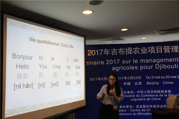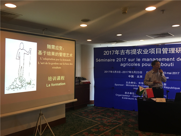 2017年5月3日,中国商务部主办、我中心承办的“2017年吉布提农业项目管理研修班”开班,18位来自吉布提政府部门的官员来华参加为期21天的研修班,外经中心胡延安副主任在开班仪式上致辞,商务部代表参加开班式,集体合影留念。