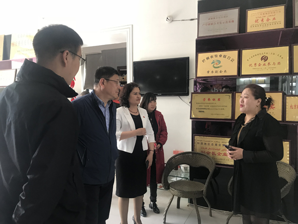 2019年5月8日,杨易主任带队赴新疆和田阳光沙漠玫瑰有限公司调研。图为公司负责人介绍公司玫瑰产品生产及出口情况。