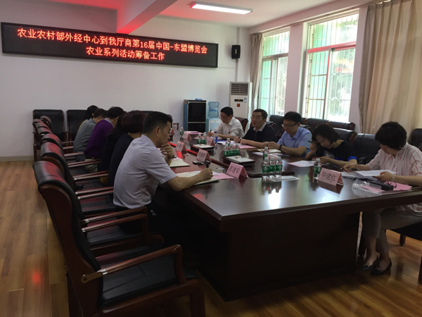 5月22日至23日,李洪涛副主任带队赴南宁市,与广西壮族自治区农业农村厅等有关单位就今年9月份拟在南宁市举办的中国-东盟农业合作论坛、东盟-中日韩粮食安全合作战略圆桌会议和“一带一路”农业投资合作论坛开展相关工作对接。(图为)李洪涛副主任与广西壮族自治区农业农村厅党组成员、厅长助理杨明飞等有关人员座谈