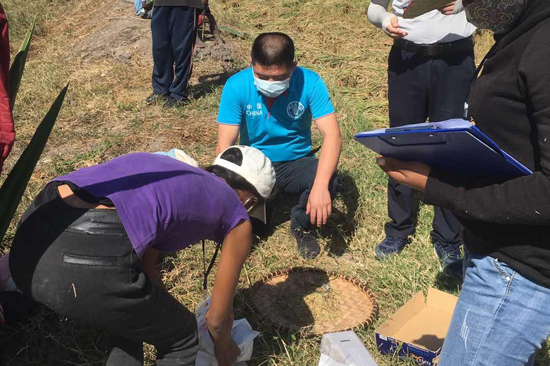 图5. 扎卡项目点中国专家指导马达加斯加合作伙伴测产