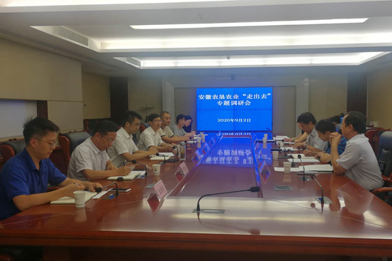 调研组成员听取安徽省农业对外合作部门联席会议机制成员汇报。