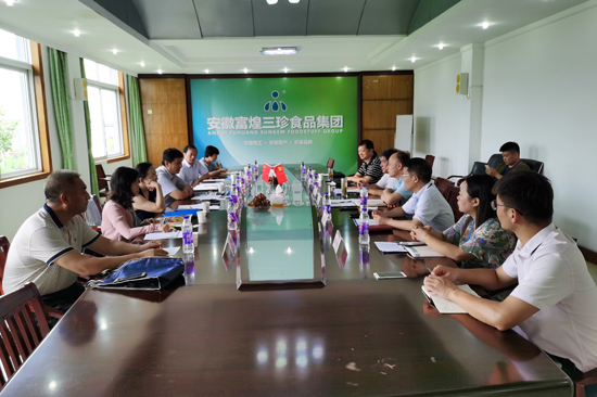 调研组一行与安徽富煌三珍食品集团管理人员座谈。