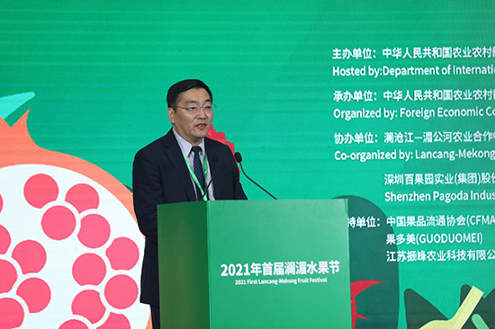 农业农村部国际合作司副司长韦正林在致辞中指出,澜湄六国共饮一江水,亲如一家人,是事实上的命运共同体。在各方共同努力下,五年来,澜湄农业合作在政策对话、产业发展、农产品贸易与投资、能力建设与知识分享等方面取得积极进展,为次区域农业绿色发展、农民增收、农村繁荣做出了贡献。水果是澜湄地区重要农产品和主要贸易品类,本次澜湄水果节就是要践行“发展为先、务实高效”的澜湄合作宗旨,共享发展机遇,推动次区域水果等各农业产业合作不断深化,促进互利共赢。他建议,成员国继续发扬接地气、惠民生、重参与的澜湄农业合作特色,不断深化农业科技经贸合作、能力建设、绿色发展等领域合作,提升澜湄农业合作水平。