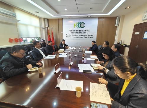 周俊厅长介绍了当前海南聚焦热带水果、特色畜禽、优质水产、特色主粮等优势品类,集中打造一批国际“精品”。希望在中心支持下开展海南农业品牌国际化发展工作,推动海南优质农产品从本土走向国际市场。金轲主任对周俊厅长一行的到访表示热烈欢迎,高度认可海南多年来与非洲、东盟开展农业国际合作成果,对海南省农业农村厅长期以来的工作支持表示衷心感谢。金轲主任重点介绍外经中心智库型事业单位建设的六项主要工作,双方可重点围绕农业服务贸易、农业国际合作、农业发展援助、农业投资促进、农业研究咨询等方面开展具体合作。下一步双方将加强工作联系,结合海南自然资源和政策优势,在推动海南农业品牌出海的同时共同助力我优质农产品、种业技术、行业标准走出去。郭立彬书记就海南农业品牌国际影响力建设、对外全产业链合作等作了意见交流。