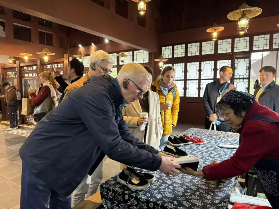 德国嘉宾在盐城考察非遗制作技艺。农民日报·中国农网记者 董家琛 摄
