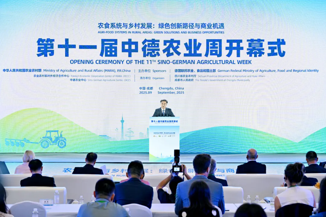 9月4日,第十一届中德农业周在四川省成都市举办。本次活动由中国农业农村部与德国联邦农业、食品和国土部联合主办,主题为“农食系统与乡村发展:绿色创新路径与商业机遇”。农业农村部国家首席兽医师(官)陶怀颖,德国联邦农业、食品和国土部国务秘书马库斯·希克,四川省副省长胡云等嘉宾出席开幕式并致辞。