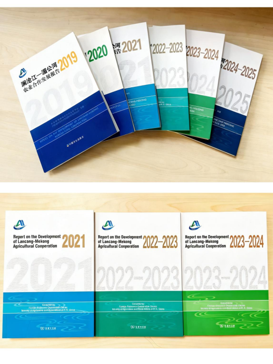 为跟踪总结澜湄农业合作进展、成效和经验,我中心自2019年起启动编制《澜沧江—湄公河农业合作发展报告》。《澜湄农业合作发展报告(2019)》包括总报告、专题篇、区域篇,较为全面地梳理了澜湄农业合作进展与成效,已于2021年3月正式出版发行。《澜湄农业合作发展报告(2020)》对澜湄农业合作中方典型项目案例进行梳理,于2021年底正式出版。《澜湄农业合作发展报告(2021)》《澜湄农业合作发展报告(2022—2023)》《澜湄农业合作发展报告(2023—2024)》围绕次区域重点产业合作进行分析,选取水稻、天然橡胶、饲料、玉米、木薯、热带水果等,从种植生产、投资贸易、产业合作、技术交流等方面梳理总结。《澜湄农业合作发展报告(2024—2025)》聚焦澜湄农业合作外方项目案例进行梳理,已于2025年底出版。